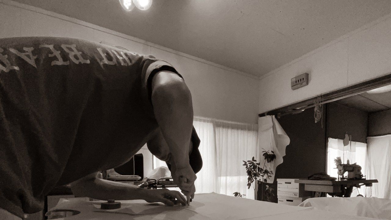 素材そのものが作品の一部であり、制作はすべて手作業。
